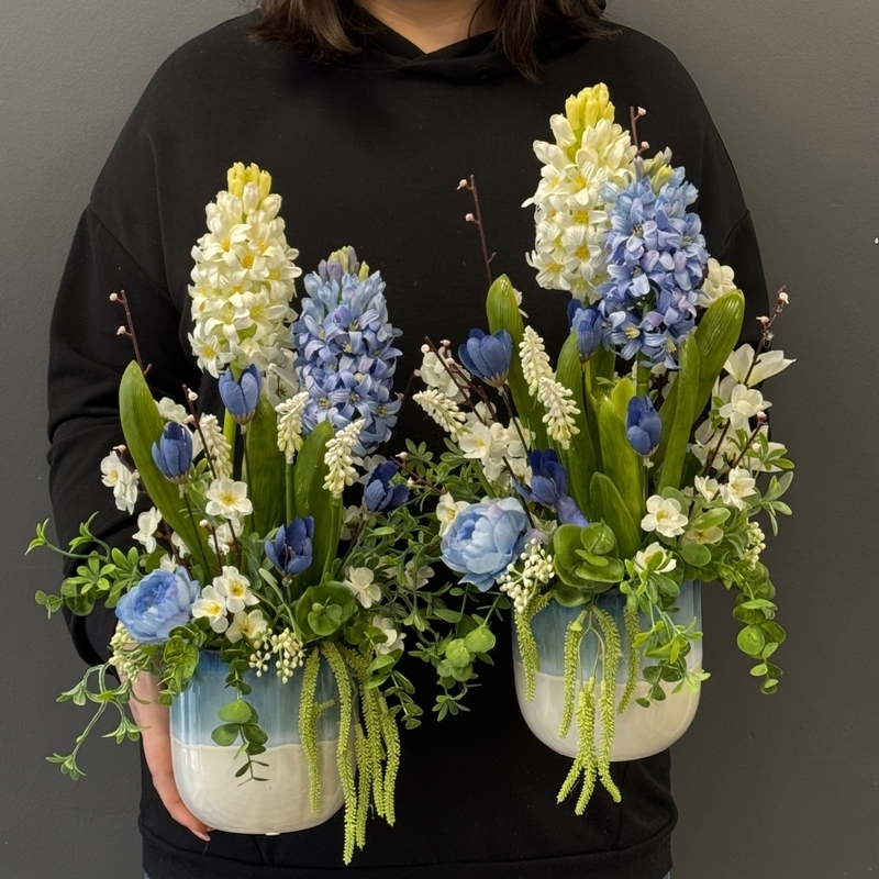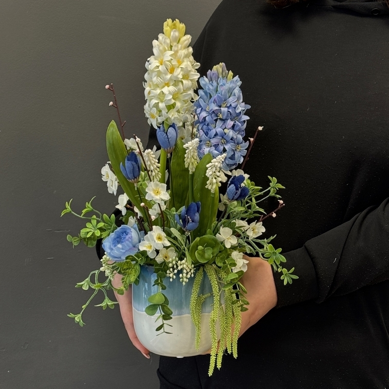 Dekoracyjna kompozycja kwiatowa w donicy Blue