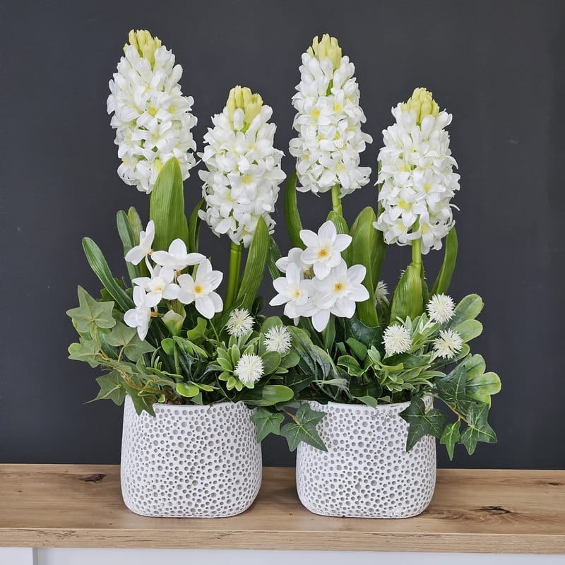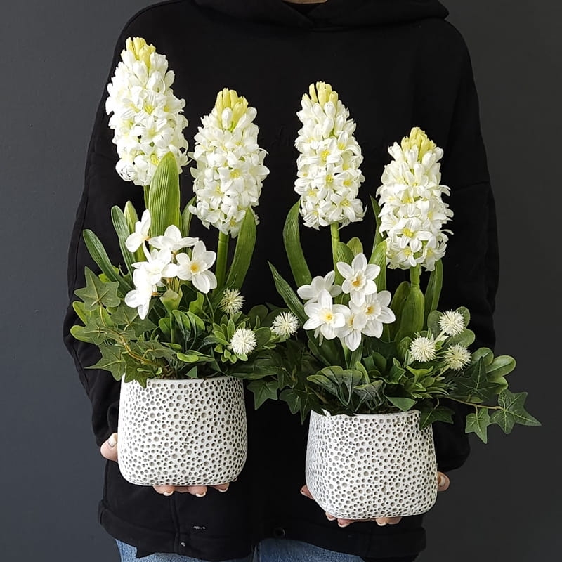 Hiacynt kompozycja wiosna donica hiacynty białe