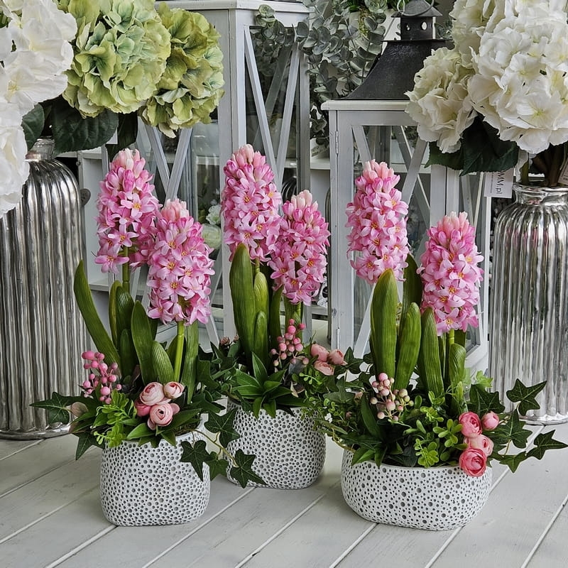 Hiacynt kompozycja wiosna donica hiacynty różowe