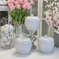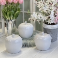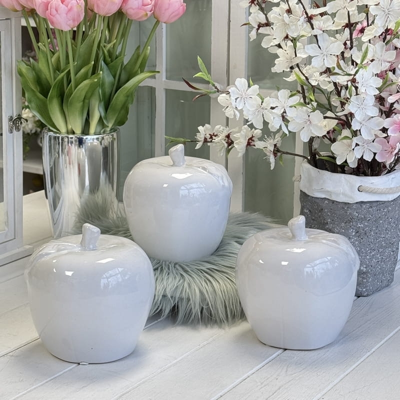 Oryginalna figurka przedstawiająca jabłko, wykonana z białej, szkliwionej ceramiki. Sprawdzi się jako ozdoba mieszkania zarówno w klasycznym, jak i nowoczesnym stylu. Przedmiotem sprzedaży jest największa z figurek przedstawionych na zdjęciu. Polecam jako doskonały pomysł na niebanalny prezent.