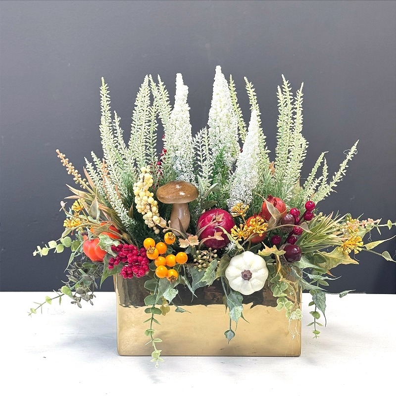 Jesienna kompozycja z wrzosami blisko natury w złotej donicy Ada wz.4