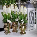Kompozycja Rita hiacynty tulipany białe złota donica