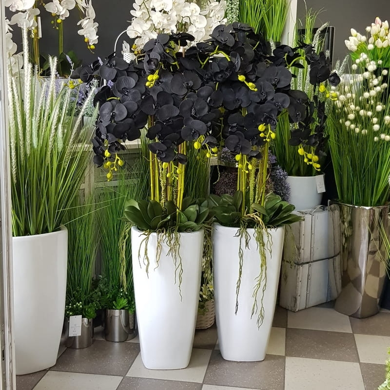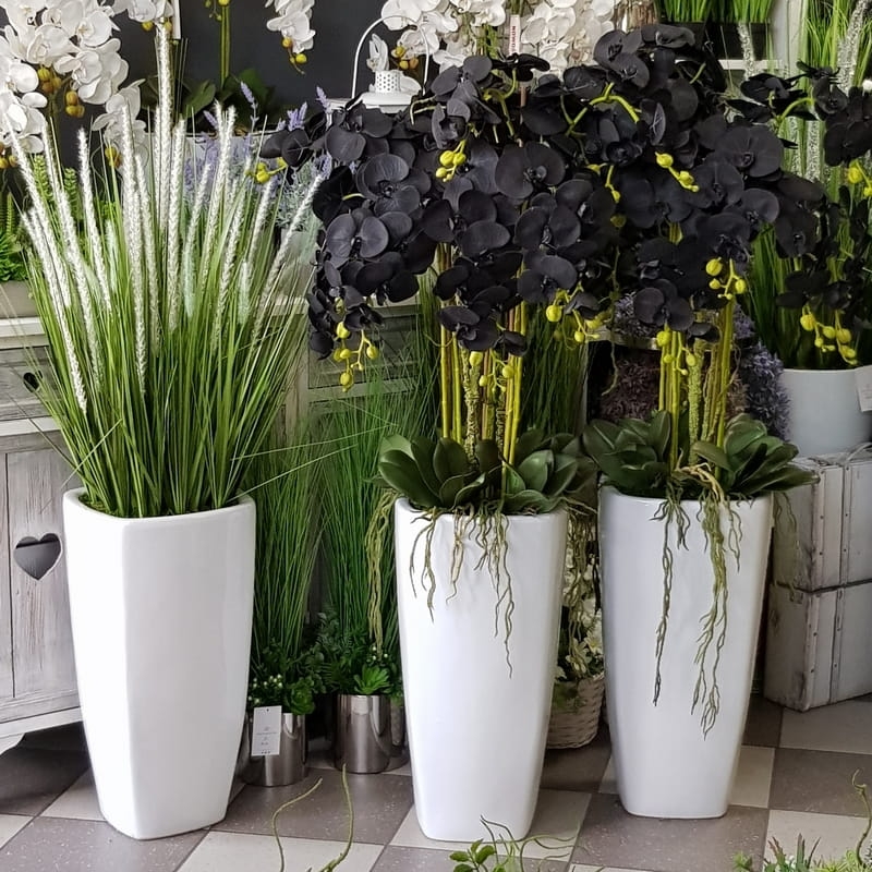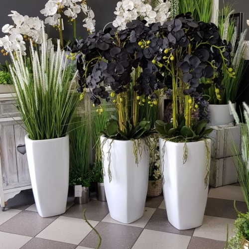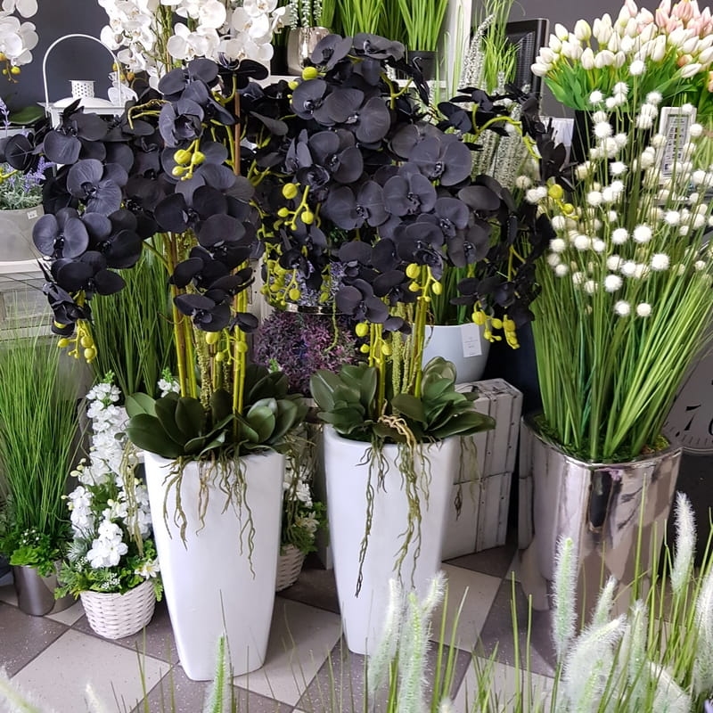Oryginalna kompozycja roślinna, wykonana z wysokiej jakości silikonowych storczyków i dodatków osadzona w oryginalnej donicy z lustrzanym efektem. Idealnie sprawdzi się jako ozdoba mieszkań zarówno w stylu klasycznym oraz nowoczesnym. Idealna dekoracja do wnętrz użyteczności publicznej, biur, hoteli, restauracji, salonów kosmetycznych.