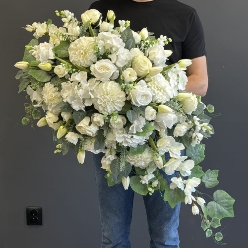 Piękna i oryginalna dekoracja jest doskonałą formą wyrażenia pamięci o bliskich. Wyszukana forma, najwyższej jakości kwiaty i perfekcyjne zestawienie kolorów sprawiają, że doskonale prezentuje się na nagrobkach.