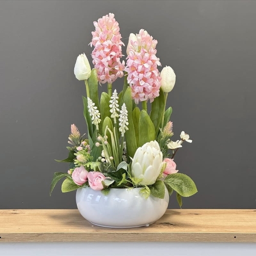 Kompozycja hiacynty białe różowe pastel Dorre M