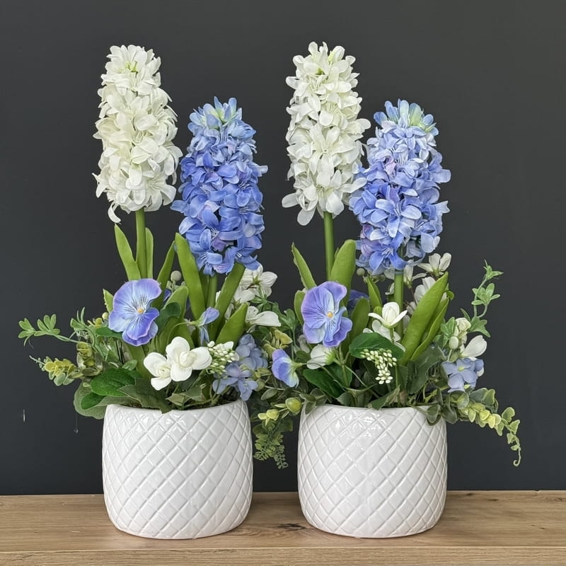 Kompozycja hiacynty stroik Catina biało-niebieska
