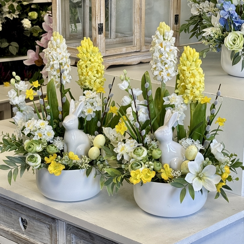 Kompozycja królik hiacynt dekoracja Wielkanoc duży zając