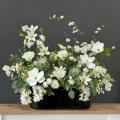 Całoroczna kompozycja kwiatowa, wykonana z kwiatów wysokiej jakości i zielonych dodatków. Całość osadzona w ceramicznej donicy. Kompozycja wykonana jest dość luźno, ma przestrzenny charakter. Stonowana kolorystyka, uzupełniona zielenią liści sprawia, że kompozycja dopasuje się do różnych rodzajów wnętrz. Dekoracja z każdej strony wygląda nieco inaczej. Polecamy do domów prywatnych, ale również do obiektów użyteczności publicznej. Nasze kompozycje to wspaniałe uzupełnienie hotelowych i restauracyjnych wnętrz, a także salonów spa, gabinetów kosmetycznych i lekarskich, klinik i poradni.