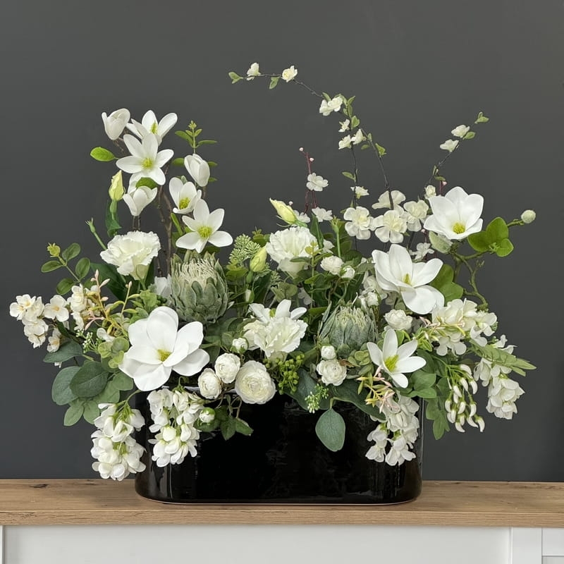 Kompozycja magnolia kwiaty sztuczne premium dekoracja kwiatowa czarna donica Paris wz.2