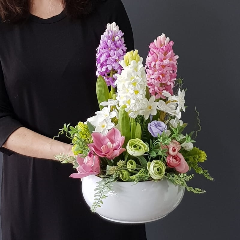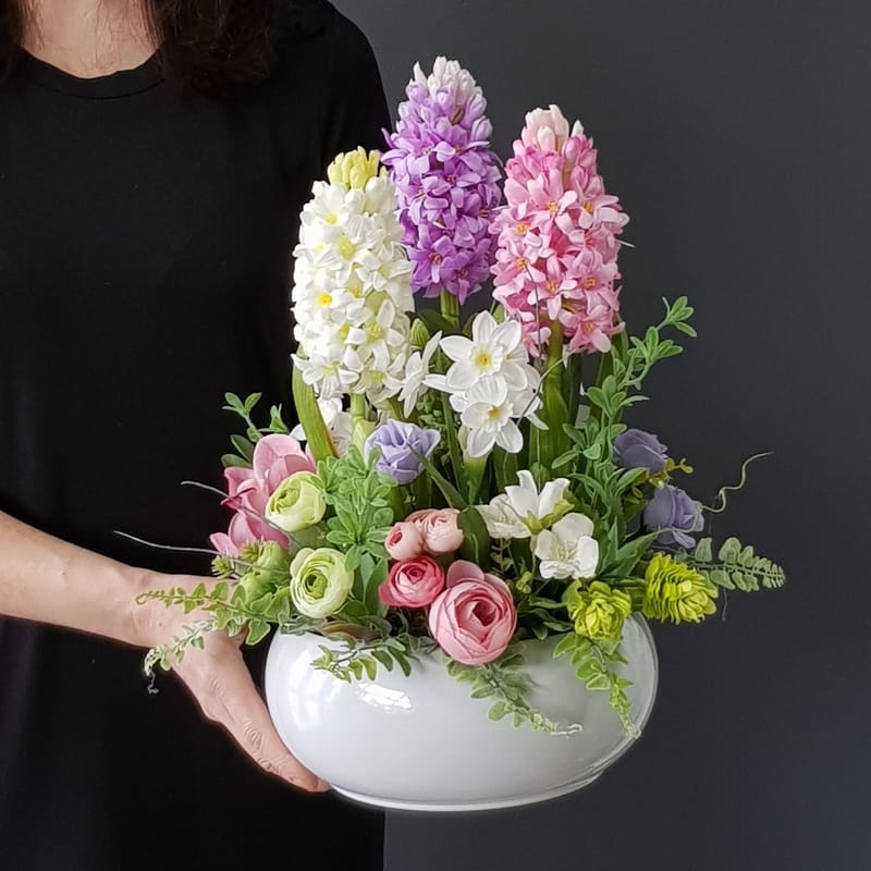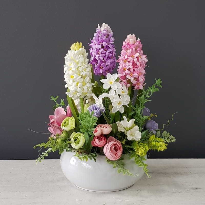 Kompozycja na stół wiosna kwiaty sztuczne hiacynty Adila L wz.1