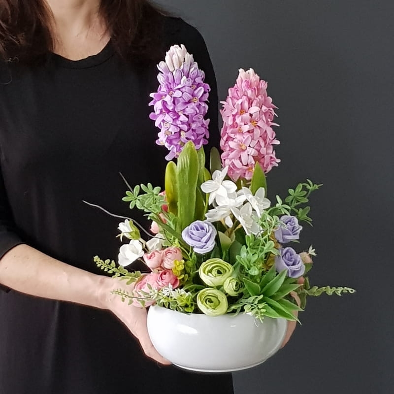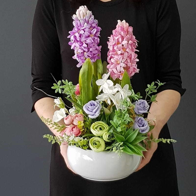 Kompozycja na stół wiosna kwiaty sztuczne hiacynty Adila M wz.1