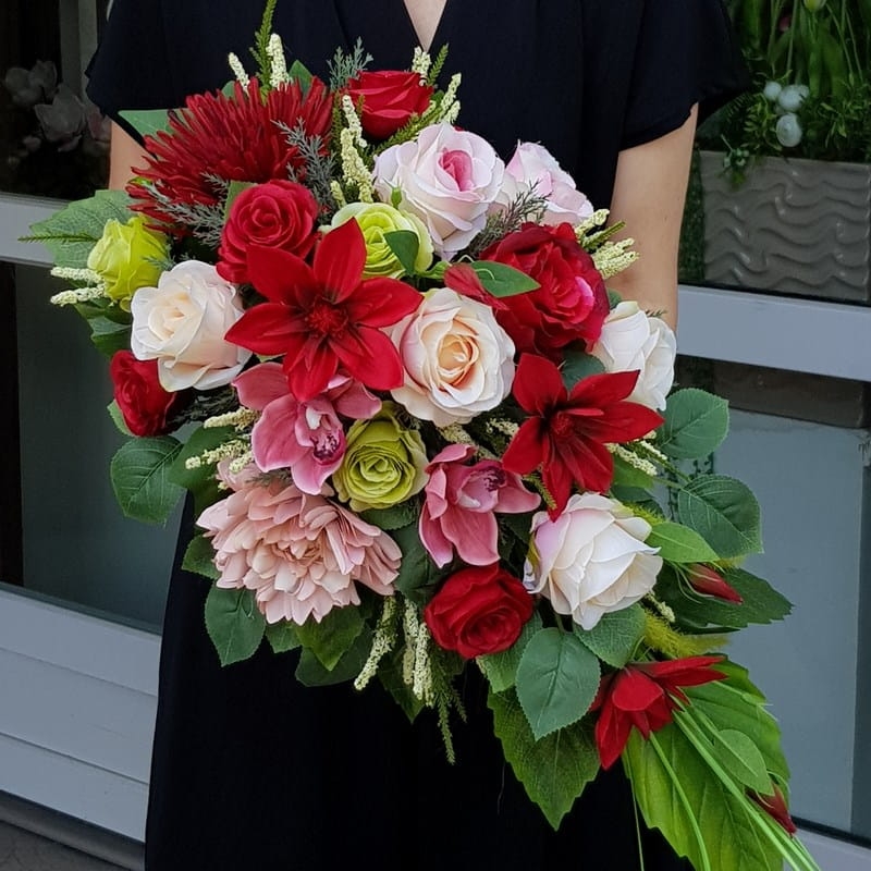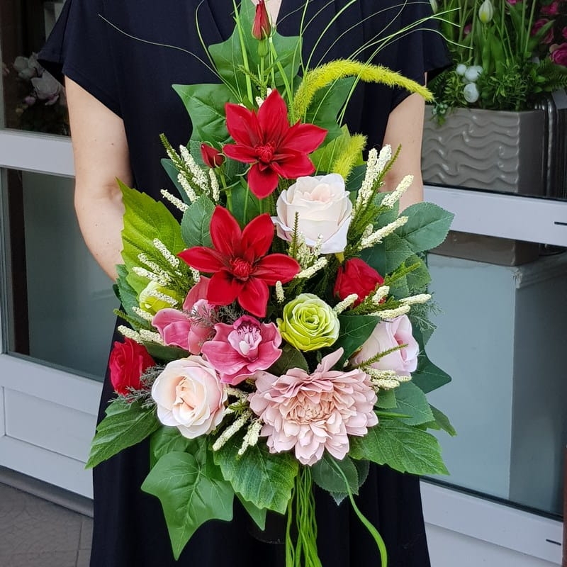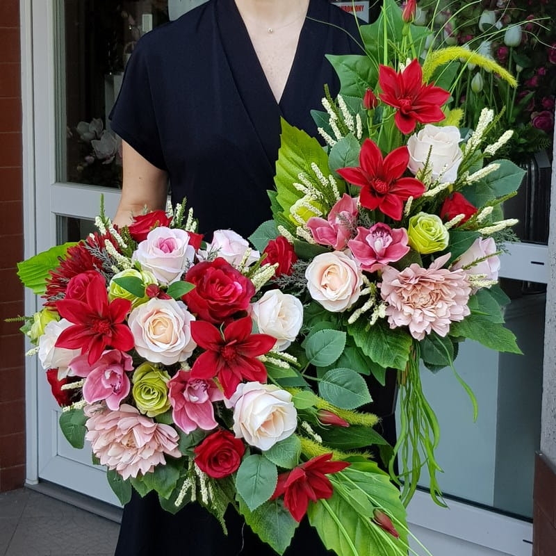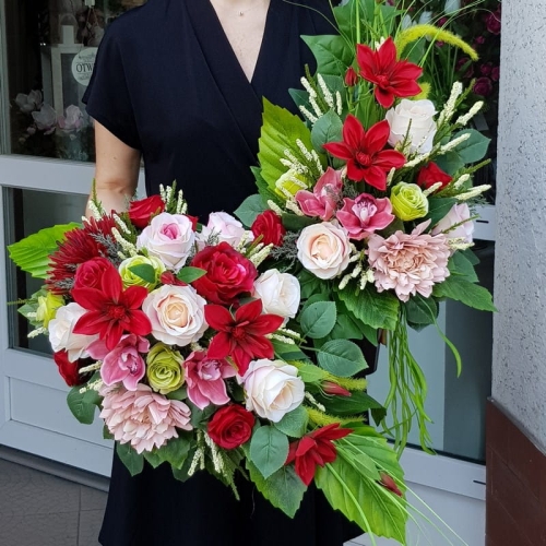 | Wymiar kompozycji: | kompozycja: 70x40x30cm, bukiet 60x40x20cm |