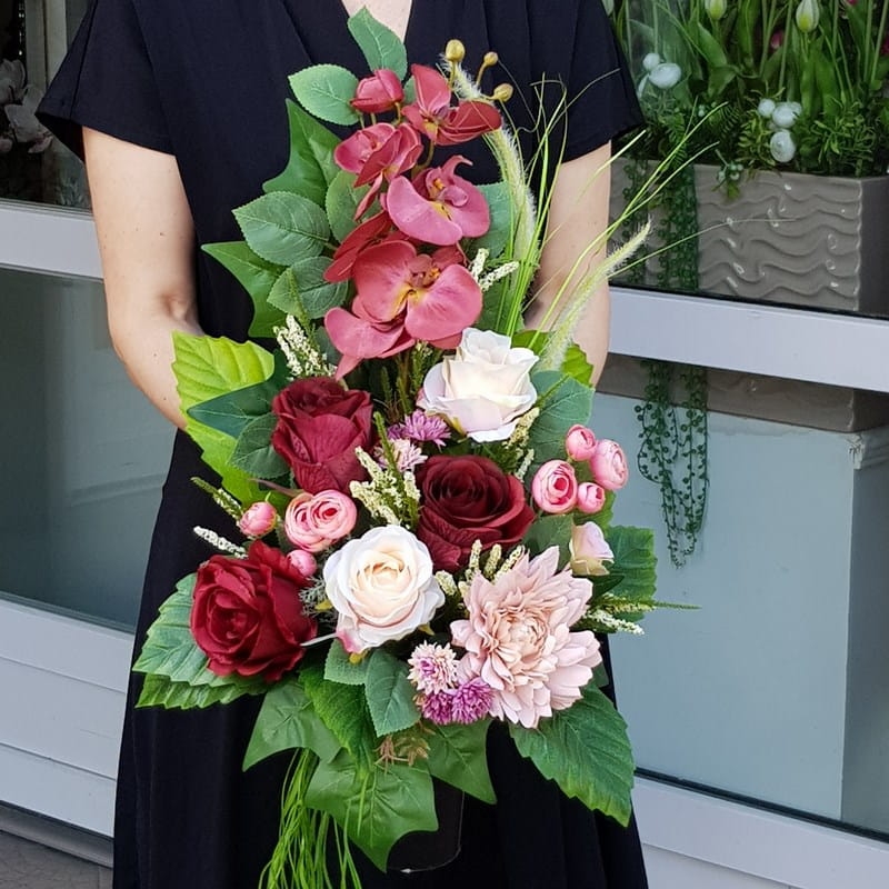 | Wymiar kompozycji: | kompozycja: 70x40x30cm, bukiet 60x40x20cm |