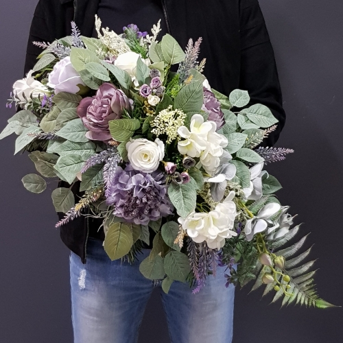 Piękna i oryginalna dekoracja jest doskonałą formą wyrażenia pamięci o bliskich. Wyszukana forma, najwyższej jakości kwiaty i perfekcyjne zestawienie kolorów sprawiają, że doskonale prezentuje się na nagrobkach.