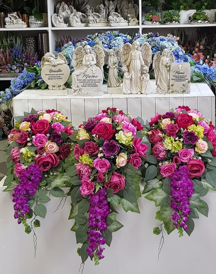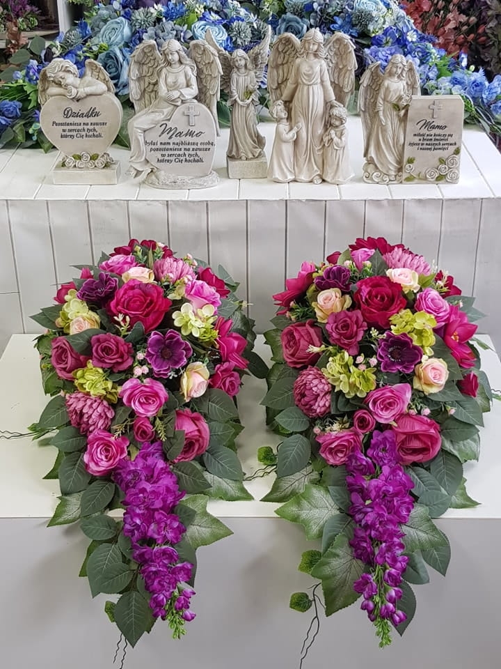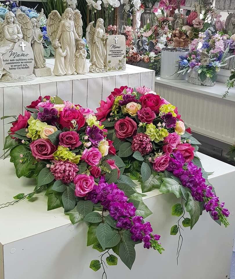 Piękna i oryginalna dekoracja jest doskonałą formą wyrażenia pamięci o bliskich. Wyszukana forma, najwyższej jakości kwiaty i perfekcyjne zestawienie kolorów sprawiają, że doskonale prezentuje się na nagrobkach.