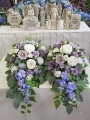 Postawa wykonana z tworzywa sztucznego,wypełniona dużą ilością kwiatów, liści i roślinnych dodatków w przepięknej, stonowanej kolorystyce. Kompozycja ma kształt kropli. Jest wydłużona jednostronnie. Dominują kwiaty w stonowanej kolorystyce oraz liście w pastelowej zieleni. Poszczególne kompozycje mogą się różnić rozkładem i rodzajami kwiatów, w zależności od dostępności, jednak kolorystyka i efekt końcowy są zawsze zachowane.