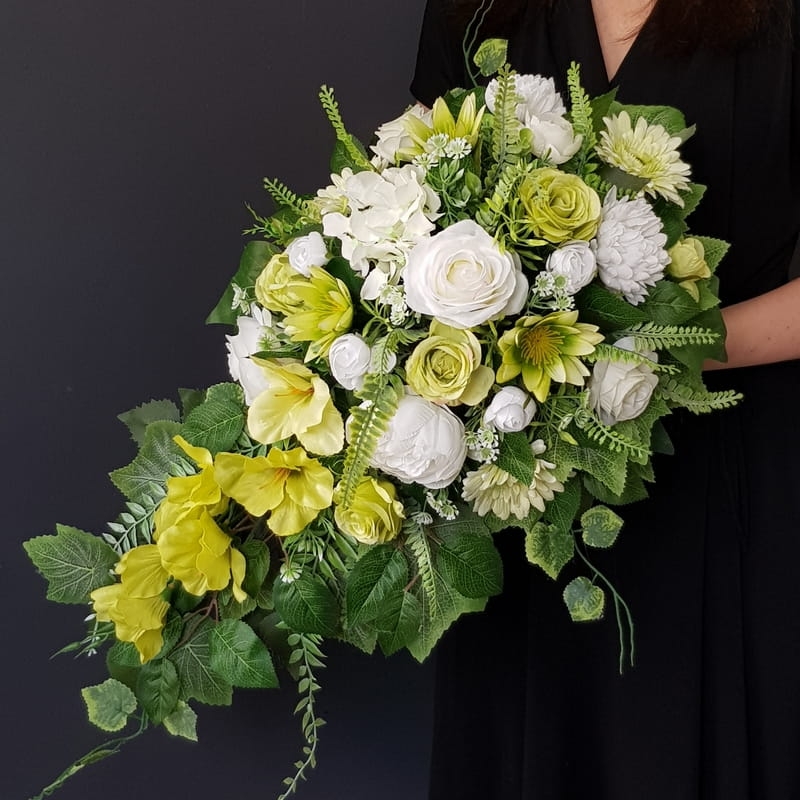 Piękna i oryginalna dekoracja jest doskonałą formą wyrażenia pamięci o bliskich. Wyszukana forma, najwyższej jakości kwiaty i perfekcyjne zestawienie kolorów sprawiają, że doskonale prezentuje się na nagrobkach.