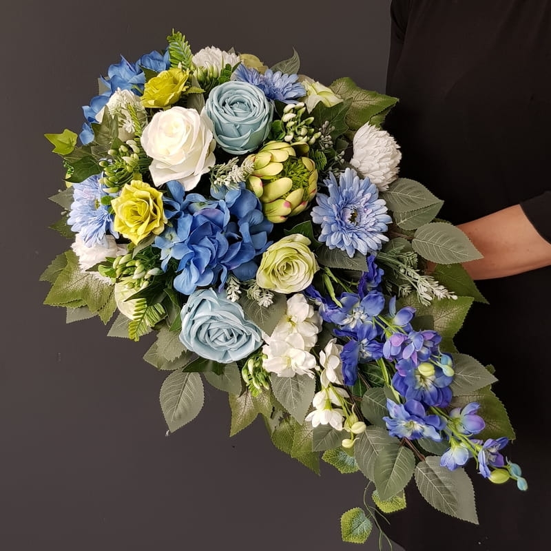 Piękna i oryginalna dekoracja jest doskonałą formą wyrażenia pamięci o bliskich. Wyszukana forma, najwyższej jakości kwiaty i perfekcyjne zestawienie kolorów sprawiają, że doskonale prezentuje się na nagrobkach.