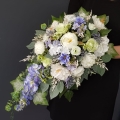Postawa wykonana z tworzywa sztucznego,wypełniona dużą ilością kwiatów, liści i roślinnych dodatków w przepięknej, stonowanej kolorystyce. Kompozycja ma kształt wrzeciona. Jest wydłużona obustronnie. Dominują kwiaty w stonowanej kolorystyce oraz liście w pastelowej zieleni. Poszczególne kompozycje mogą się różnić rozkładem i rodzajami kwiatów, w zależności od dostępności, jednak kolorystyka i efekt końcowy są zawsze zachowane.