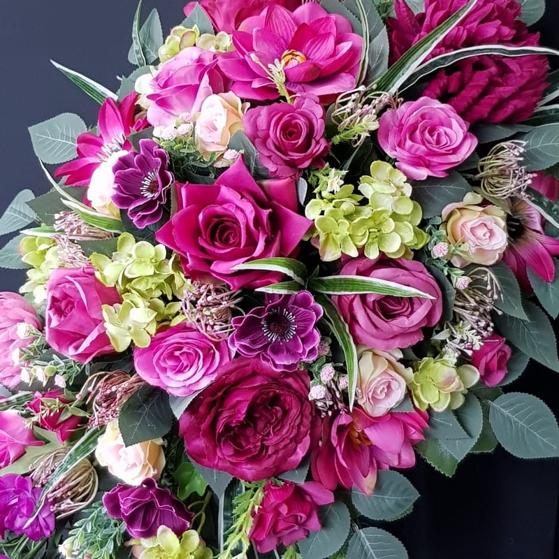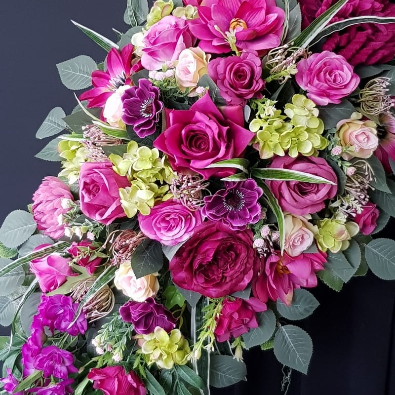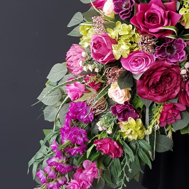 Piękna i oryginalna dekoracja jest doskonałą formą wyrażenia pamięci o bliskich. Wyszukana forma, najwyższej jakości kwiaty i perfekcyjne zestawienie kolorów sprawiają, że doskonale prezentuje się na nagrobkach.