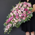 Postawa wykonana z tworzywa sztucznego,wypełniona dużą ilością kwiatów, liści i roślinnych dodatków w przepięknej, stonowanej kolorystyce. Kompozycja ma kształt kropli. Jest wydłużona jednostronnie. Dominują kwiaty w stonowanej kolorystyce oraz liście w pastelowej zieleni. Poszczególne kompozycje mogą się różnić rozkładem i rodzajami kwiatów, w zależności od dostępności, jednak kolorystyka i efekt końcowy są zawsze zachowane.