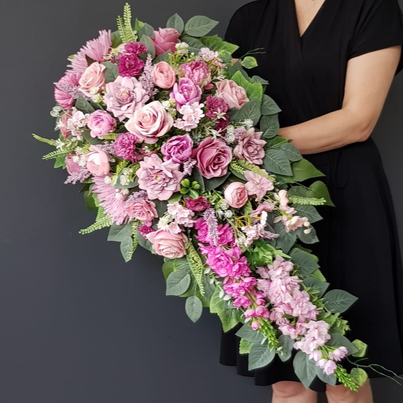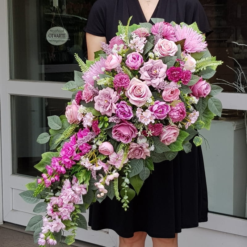 Piękna i oryginalna dekoracja jest doskonałą formą wyrażenia pamięci o bliskich. Wyszukana forma, najwyższej jakości kwiaty i perfekcyjne zestawienie kolorów sprawiają, że doskonale prezentuje się na nagrobkach.