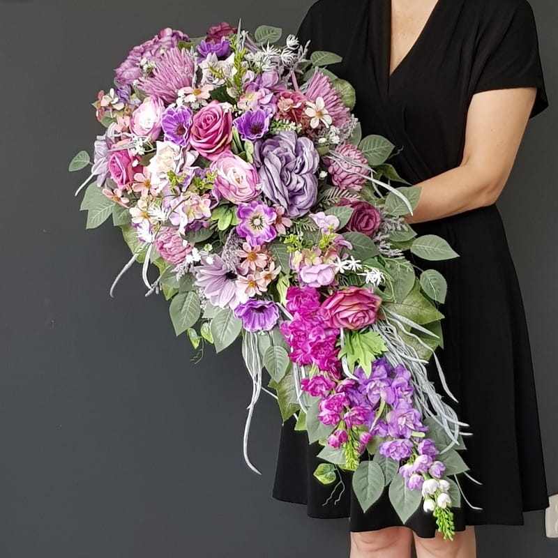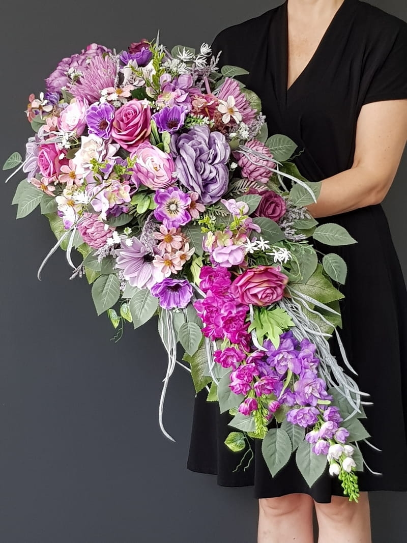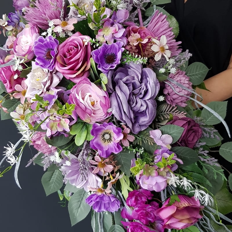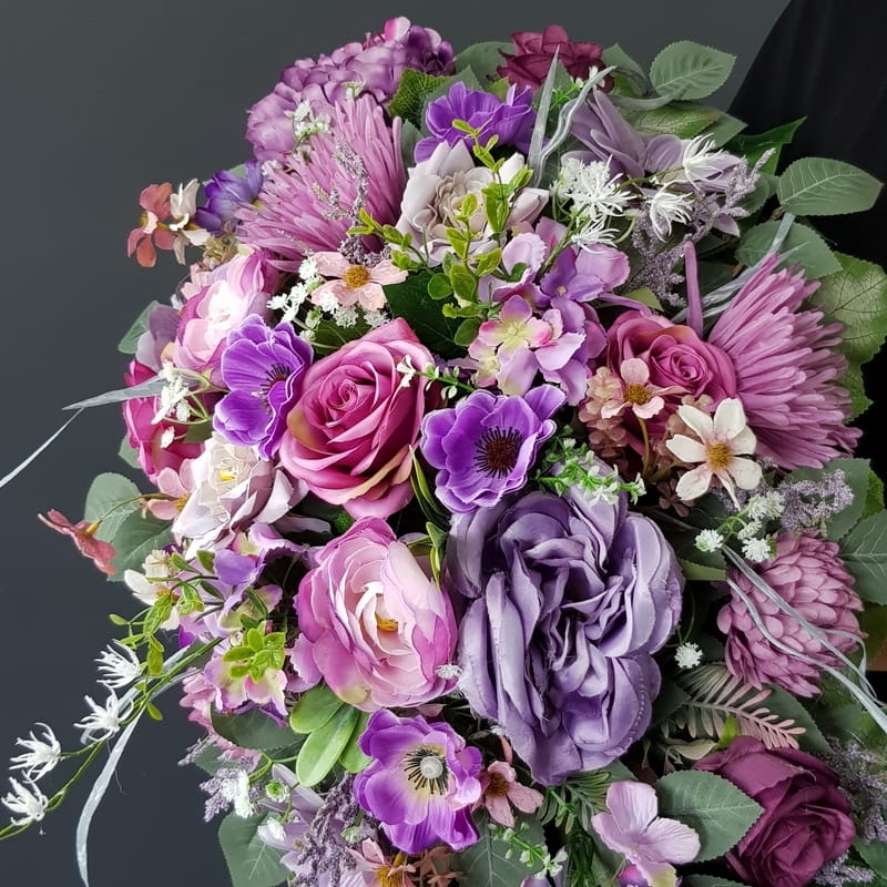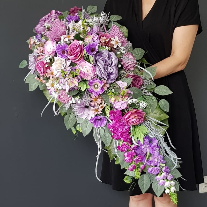 Piękna i oryginalna dekoracja jest doskonałą formą wyrażenia pamięci o bliskich. Wyszukana forma, najwyższej jakości kwiaty i perfekcyjne zestawienie kolorów sprawiają, że doskonale prezentuje się na nagrobkach.
