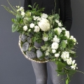 Kompozycja nagrobna wiązanka na grób de luxe Katia white L biała podstawa