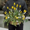 Realistyczne tulipany o delikatnie wyprofilowanych płatkach i naturalnie układających się łodygach zostały wzbogacone różnorodną zielenią dekoracyjną, która nadaje aranżacji lekkości i organicznego charakteru. Złota misa na stabilnej podstawie dodaje kompozycji elegancji oraz sprawia, że całość prezentuje się luksusowo i efektownie. To gotowa dekoracja, która nie wymaga pielęgnacji, a przez cały rok zachowuje swój świeży i estetyczny wygląd. Doskonale sprawdzi się jako ozdoba: Polecamy do domów prywatnych, ale również do obiektów użyteczności publicznej. Nasze kompozycje to wspaniałe uzupełnienie hotelowych i restauracyjnych wnętrz, recepcji, a także salonów spa, gabinetów kosmetycznych i lekarskich, klinik i poradni.