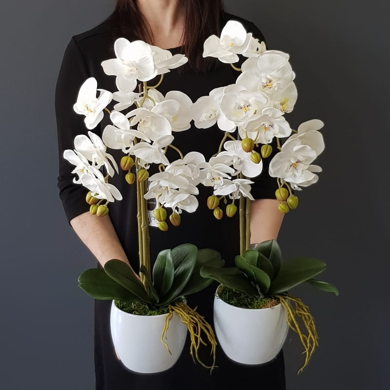 Kompozycja storczyki sztuczne storczyk biały silikon Paola white