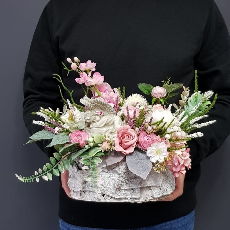 Kompozycja stroik na grób donica anioł dziecko Alma wz.1 róż