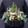 Oryginalna, zimowa kompozycja dekoracyjna wykonana z wysokiej jakości roślin sztucznych oraz figurek, umieszczona w ceramicznej donicy. Całość jest wykonana z dbałością o najdrobniejszy szczegół. Rośliny i dodatki są dopasowane kolorystycznie tak, aby tworzyły spójną całość. Idealna do mieszkania, na prezent lub do sesji fotograficznych.