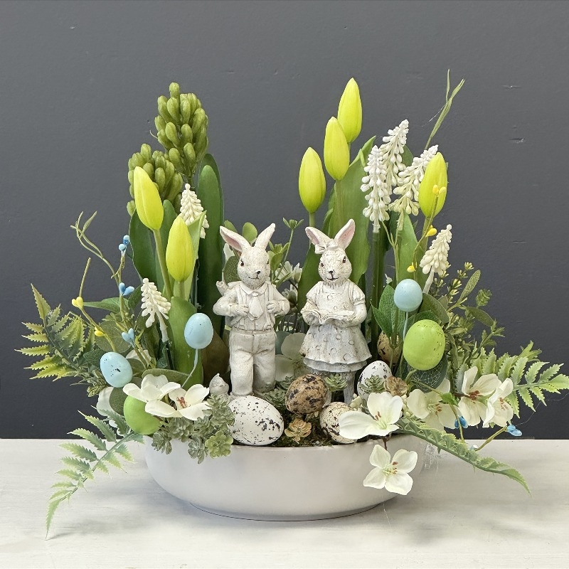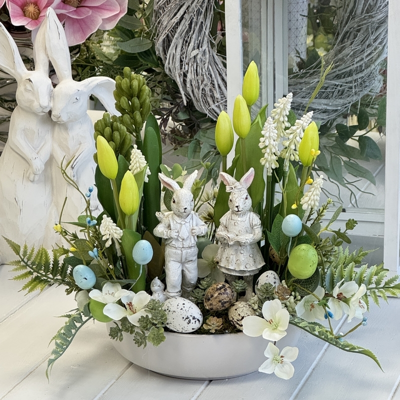 Kompozycja stroik wielkanocny wiosna pan i pani zajączki Miriam wz.3