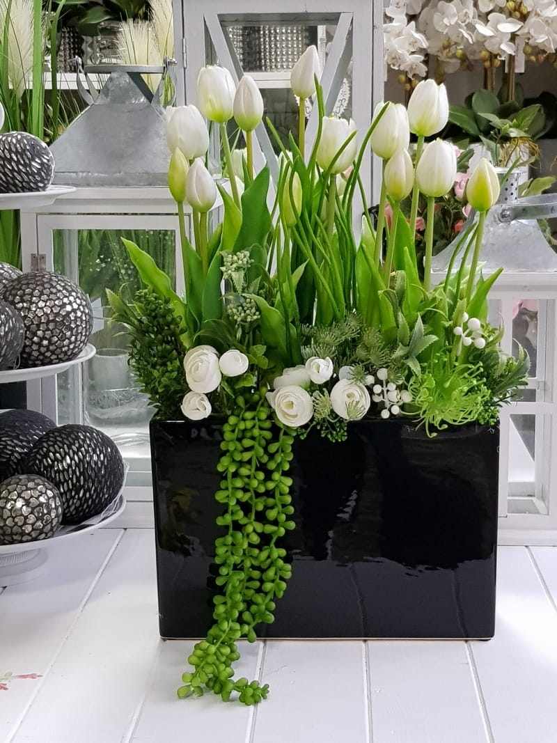 Kompozycja tulipany Kora czarna donica prostokąt