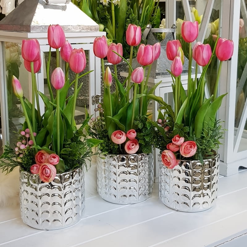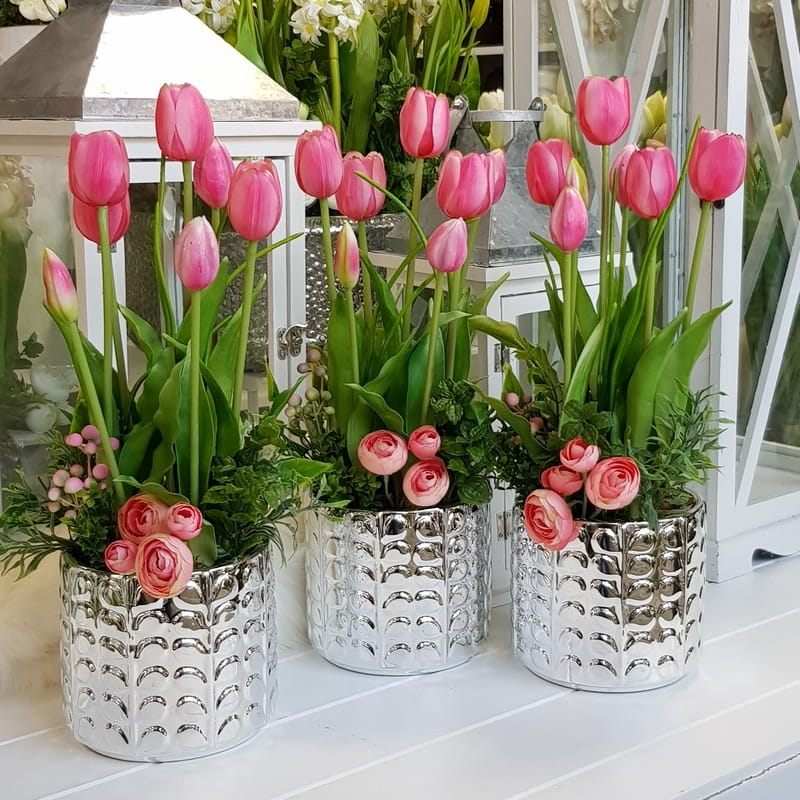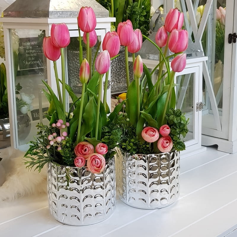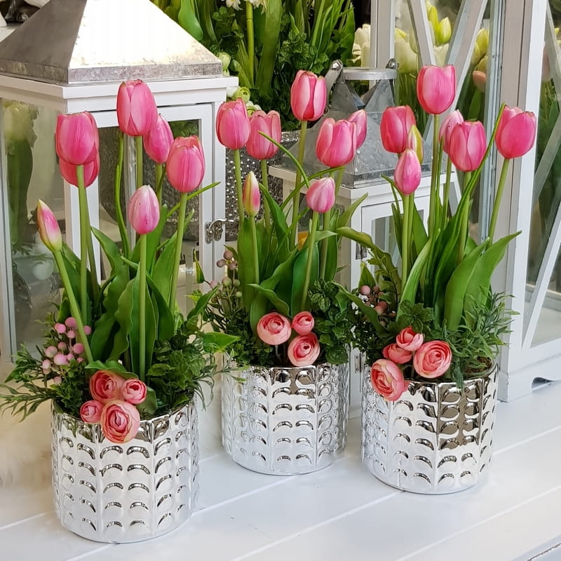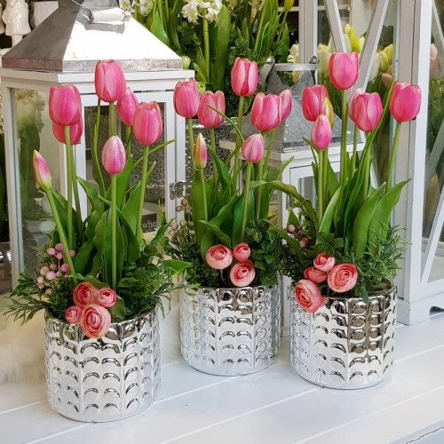 Kompozycja tulipany kwiaty Greta silver silikon różowe