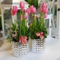 Oryginalna kompozycja roślinna, wykonana z wysokiej jakości silikonowych tulipanów, zielonych dodatków oraz ceramiki. Idealnie sprawdzi się jako ozdoba mieszkań zarówno w stylu klasycznym, jak i nowoczesnym. Pięknie będzie się prezentowała na komodzie czy parapecie. Polecamy jako oryginalny pomysł na prezent.