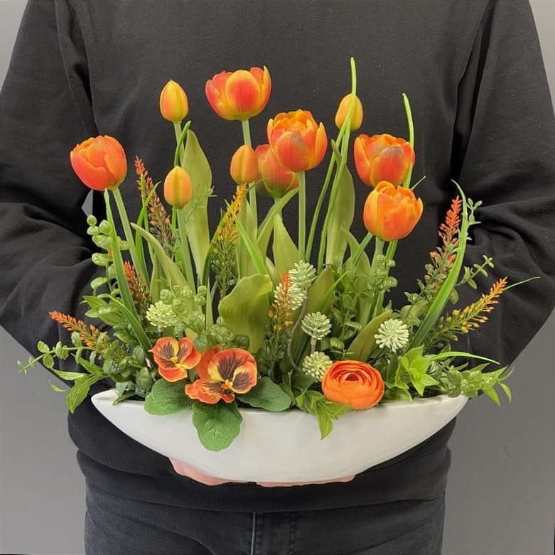 Kompozycja w donicy kwiaty tulipany silikon Canoe new pomarańczowa