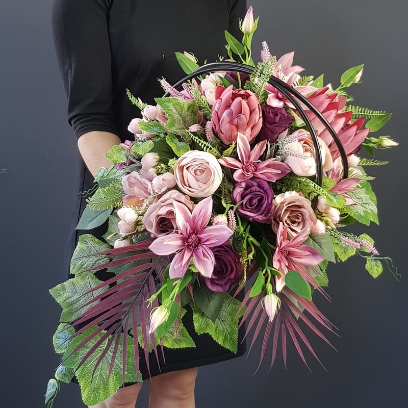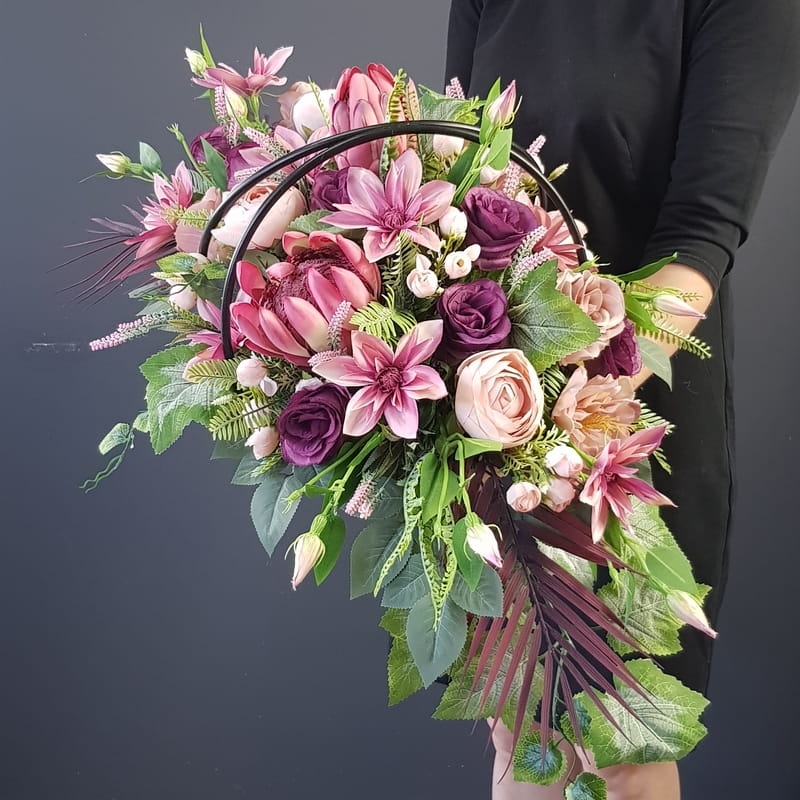 Piękna i oryginalna dekoracja jest doskonałą formą wyrażenia pamięci o bliskich. Wyszukana forma, najwyższej jakości kwiaty i perfekcyjne zestawienie kolorów sprawiają, że doskonale prezentuje się na nagrobkach.