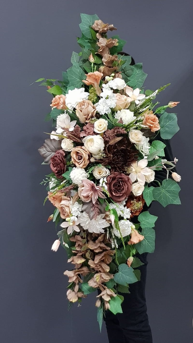 Kompozycja wiązanka nagrobna stroik na grób GINA brązy 130cm NEW