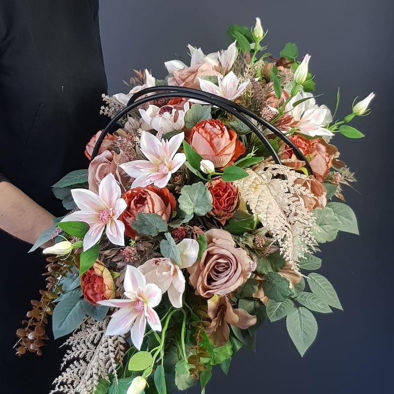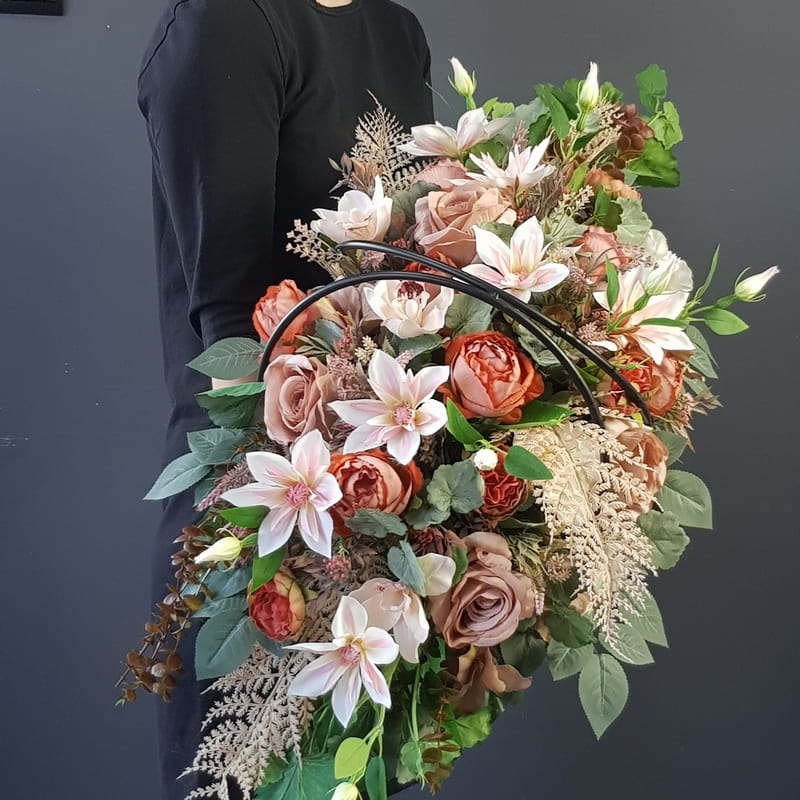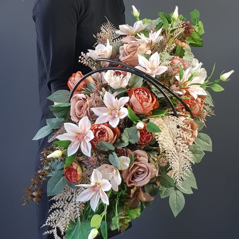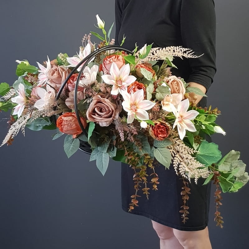 Piękna i oryginalna dekoracja jest doskonałą formą wyrażenia pamięci o bliskich. Wyszukana forma, najwyższej jakości kwiaty i perfekcyjne zestawienie kolorów sprawiają, że doskonale prezentuje się na nagrobkach.