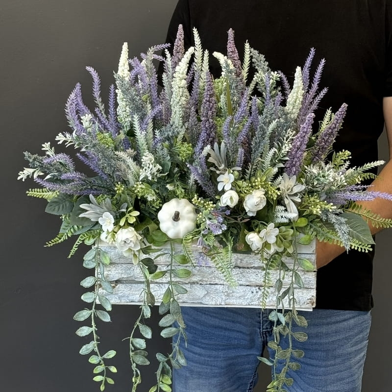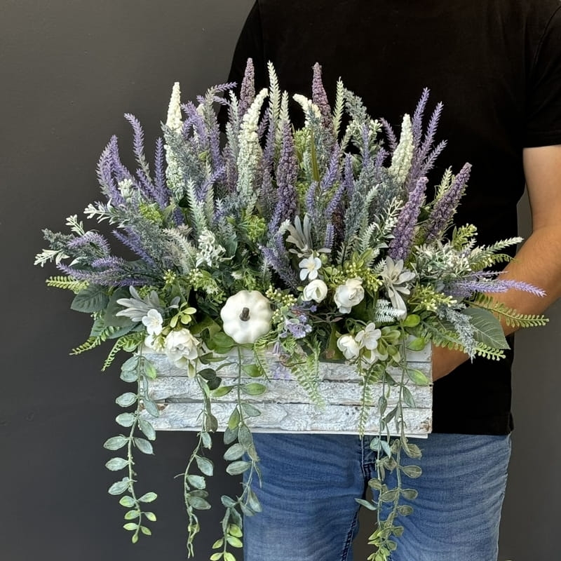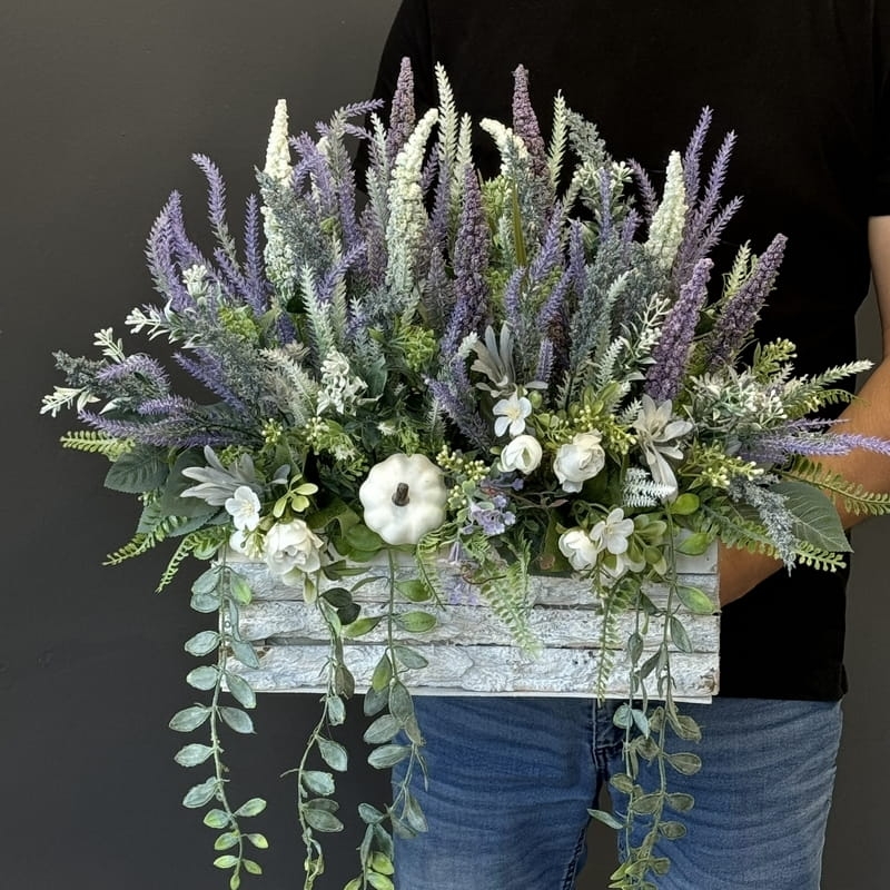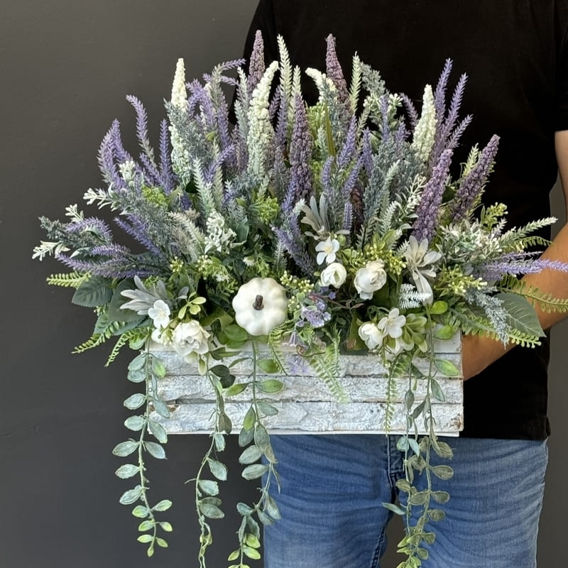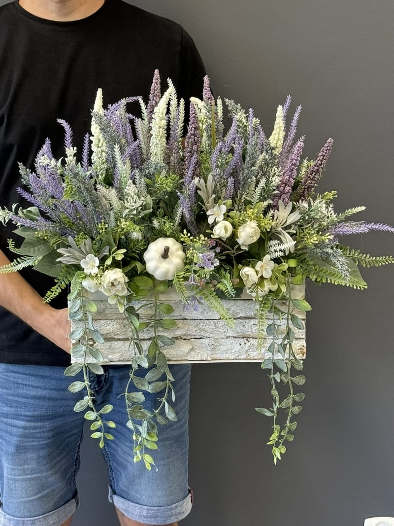 Sztuczne wrzosy osadzone w drewnianej donicy pokrytej fragmentami kory to stylowa i trwała dekoracja. Nasza propozycja to połączenie różnych rodzajów wrzosów w jednej donicy, uzupełnionych jesiennymi dodatkami. Piękne, zestawienie odcieni i faktur. Oryginalna, drewniana donica dodatkowo obciążona cementem doskonale współgra z naturalnym wyglądem sztucznych wrzosów, co stanowi niezwykle harmonijne połączenie. Doskonale sprawdzają się jako element dekoracyjny, zarówno wewnątrz, jak i na zewnątrz pomieszczeń. Ich wyjątkowy urok i różnorodność kolorów stanowią cenne walory estetyczne dla każdego miejsca, w którym są umieszczone. Często wykorzystywane przez naszych klientów jako kompozycja nagrobna.