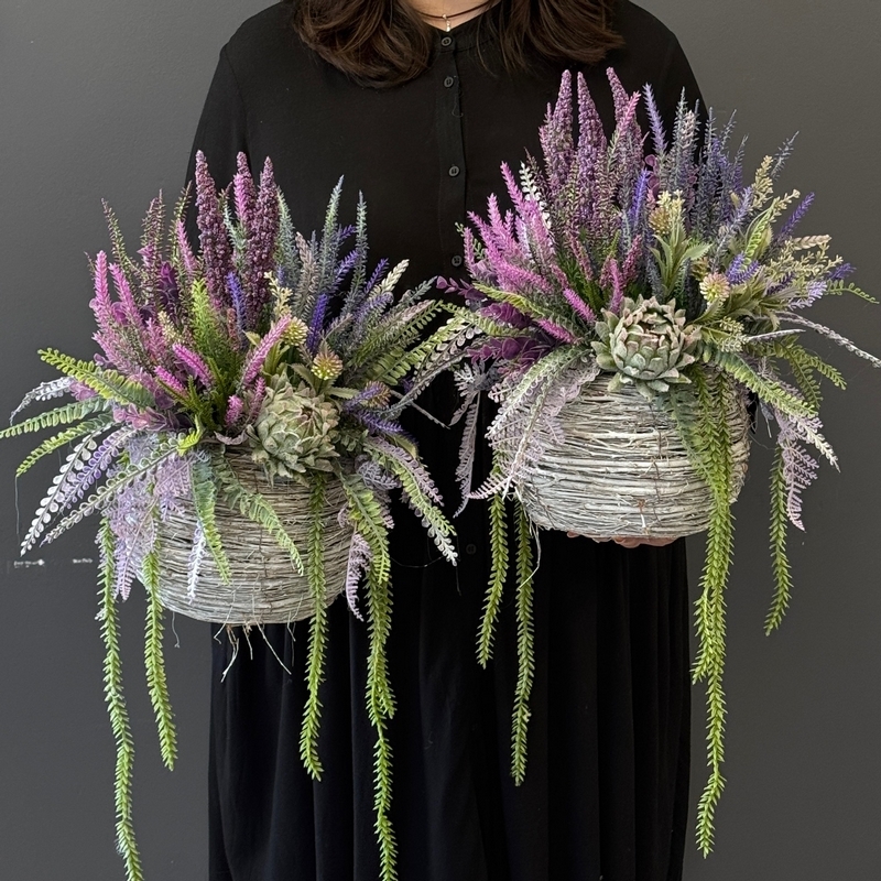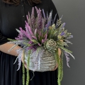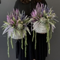 Sztuczne wrzosy osadzone w donicy z faszyny to stylowa i trwała dekoracja. Nasza propozycja to połączenie różnych rodzajów wrzosów w jednej donicy, uzupełnionych jesiennymi dodatkami. Piękne zestawienie odcieni i faktur.