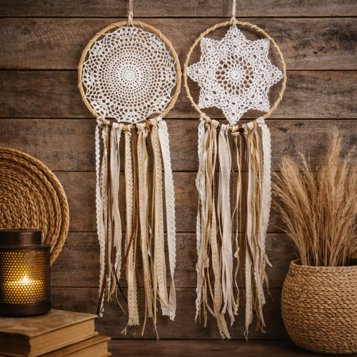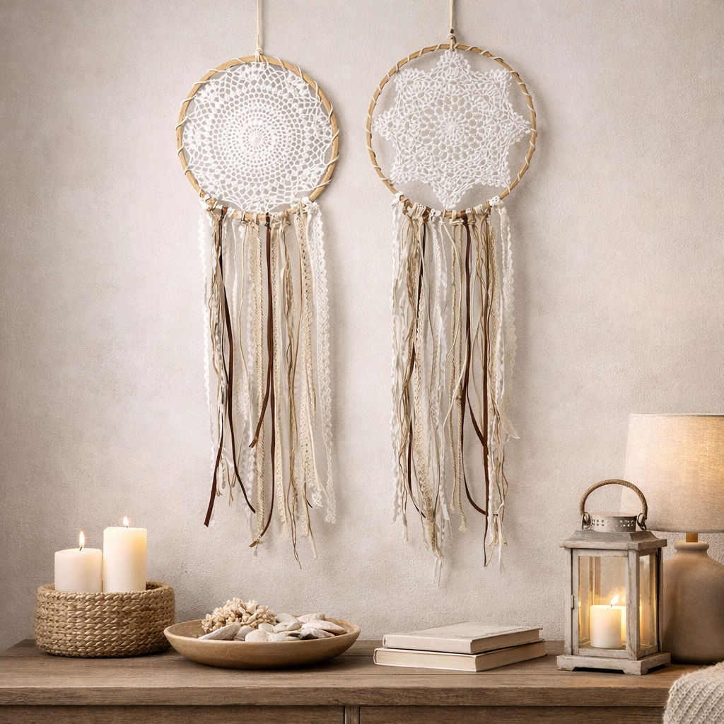 Dekoracyjna zawieszka w kształcie popularnego łapacza snów. Sprawdzi się jako subtelny element dekoracyjny w każdym wnętrzu. Polecam jako doskonały pomysł na prezent.