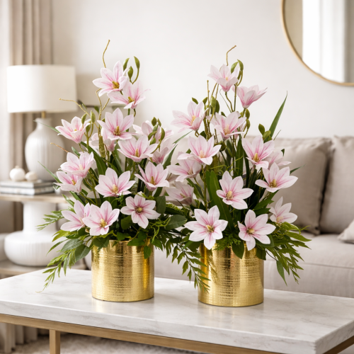 Magnolia magnolie silikon kompozycja kwiatowa Rubens jasny róż gold