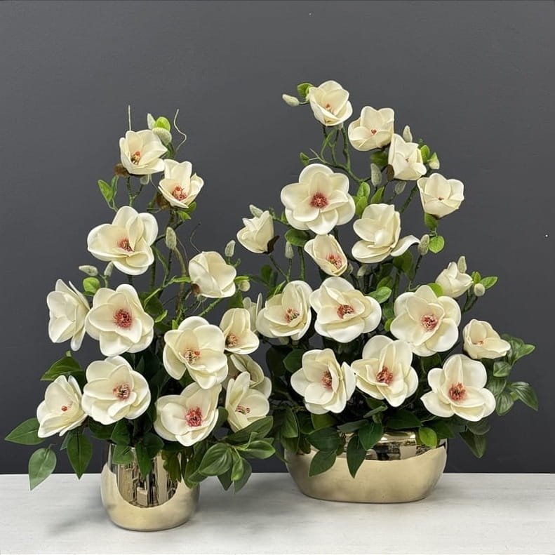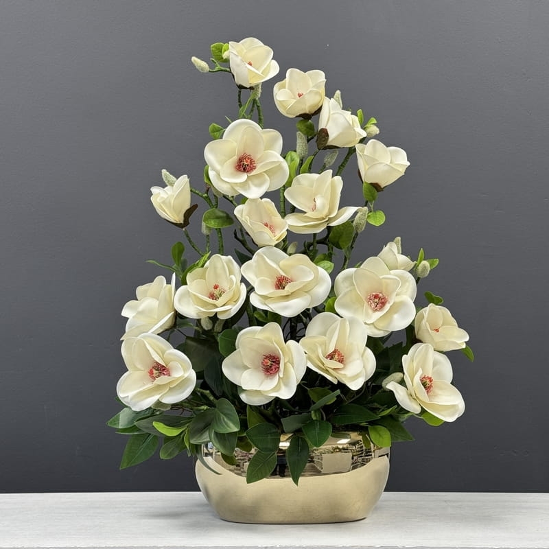 Magnolia magnolie silikon kompozycja kwiaty sztuczne premium Susanna gold