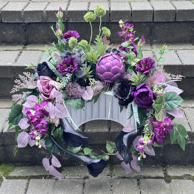 Piękna i oryginalna dekoracja jest doskonałą formą wyrażenia pamięci o bliskich. Wyszukana forma, najwyższej jakości kwiaty i perfekcyjne zestawienie kolorów sprawiają, że doskonale prezentuje się na nagrobkach.