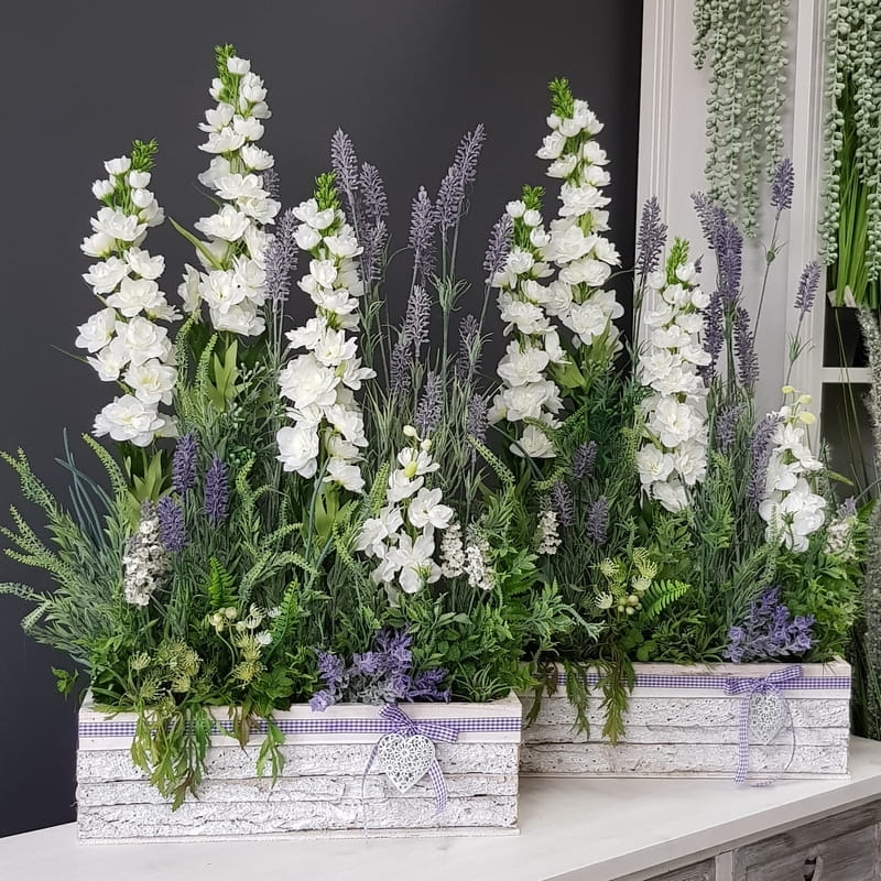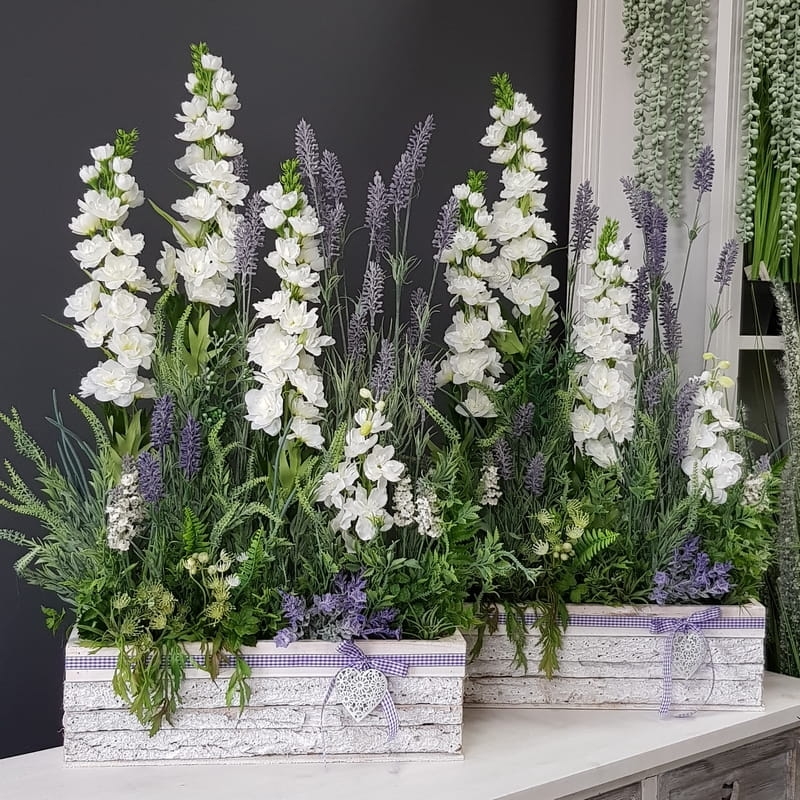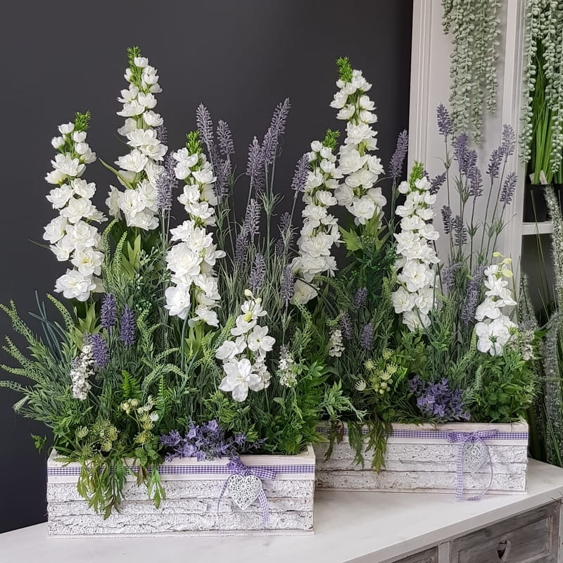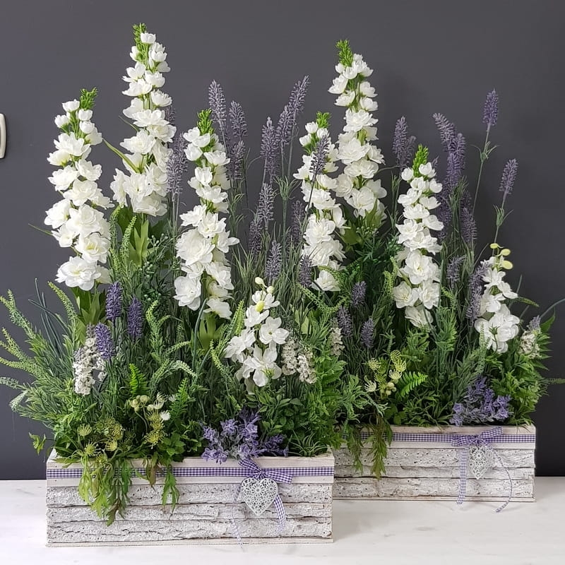 Ostróżki kompozycja blisko natury biało-lawendowa