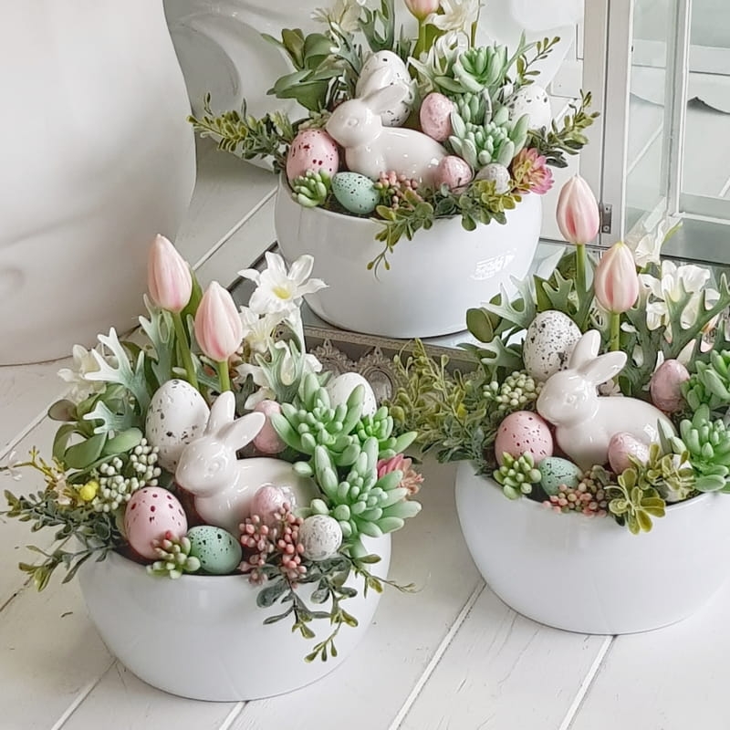 Pastelowa kompozycja stroik wielkanocny zajączek Izyda M
