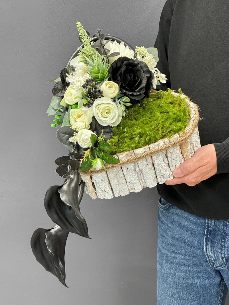 Piękna i oryginalna dekoracja jest doskonałą formą wyrażenia pamięci o bliskich. Oryginalna forma, najwyższej jakości kwiaty i perfekcyjne zestawienie kolorów sprawiają, że doskonale prezentuje się na nagrobkach.