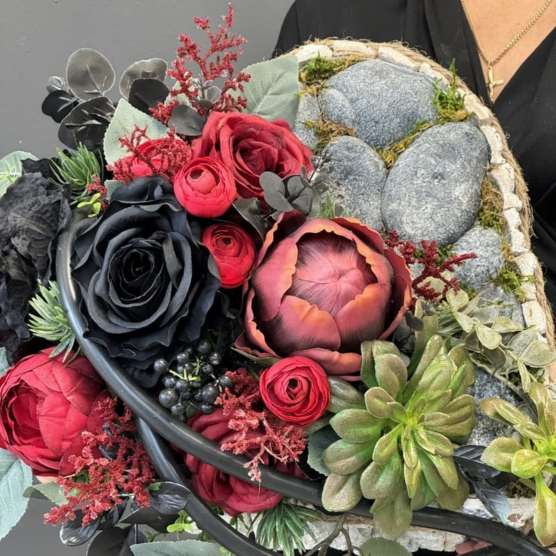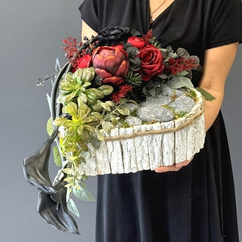 Piękna i oryginalna dekoracja jest doskonałą formą wyrażenia pamięci o bliskich. Oryginalna forma, najwyższej jakości kwiaty i perfekcyjne zestawienie kolorów sprawiają, że doskonale prezentuje się na nagrobkach.
